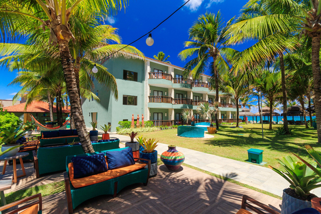 No Hotel Solar, em Porto de Galinhas, o hóspede encontra 140 acomodações e estrutura completa de lazer à beira-mar no litoral sul pernambucano. Foto: Divulgação