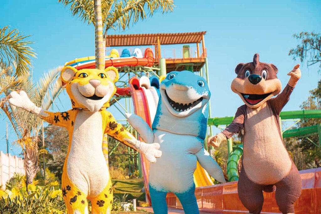O parque aquático é o espaço preferido dos hóspedes, com piscinas climatizadas e um toboágua de 30 metros. No entorno, há circuito de arvorismo, tirolesa e arco e flecha. Enquanto os pequenos se divertem, os pais curtem a piscina e a academia envidraçada sobre as águas do lago, no maior estilo Taiti. Dá para andar de pedalinho ou caiaque e visitar a capela barroca de Santo Expedito, que fica ainda mais linda com a iluminação noturna. No resort, os pais podem relaxar numa boa enquanto os pequenos se divertem com os monitores na Fazendinha, na área de jogos e no minizoológico, onde vivem macacos, jacarés, lhamas e aves.