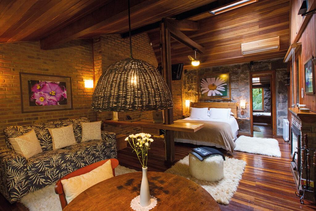 O Hotel Rosa dos Ventos está encravado em uma linda região de montanhas em Teresópolis, a 100 km do Rio de Janeiro. A propriedade fica imersa na natureza da serra e conta com cerca de 1 milhão de metros quadrados de Mata Atlântica preservada. Não bastasse a beleza do entorno, a arquitetura é encantadora, toda em estilo alpino, que remete à herança cultural dos imigrantes suíços que chegaram à região no início do século 19. No total, são 40 apartamentos e suítes com vistas para o vale, o lago e os jardins. A ideia é proporcionar conforto e tranquilidade tanto para casais que buscam um refúgio romântico nas montanhas quanto para famílias inteiras. Cama king size, lareira, banheira de hidromassagem e aparelho de DVD são alguns dos mimos encontrados nas habitações.