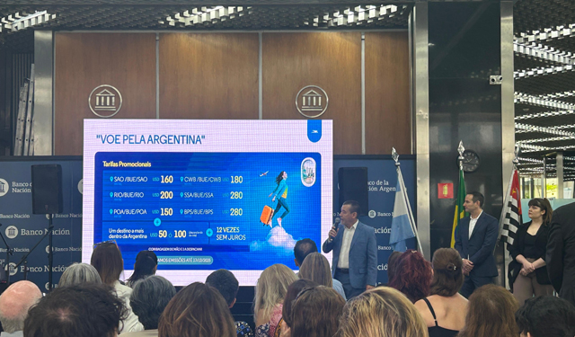 Outro anúncio chamou atenção das agências e operadoras presentes: a prorrogação da ação tarifária pós–Black Friday. A partir de US$ 160, é possível voar São Paulo–Buenos Aires–São Paulo. Por mais US$ 50 (norte) ou US$ 100 (sul), o passageiro inclui um segundo destino argentino, sempre com bagagem despachada de 23 kg incluída, algo raro em promoções aéreas.