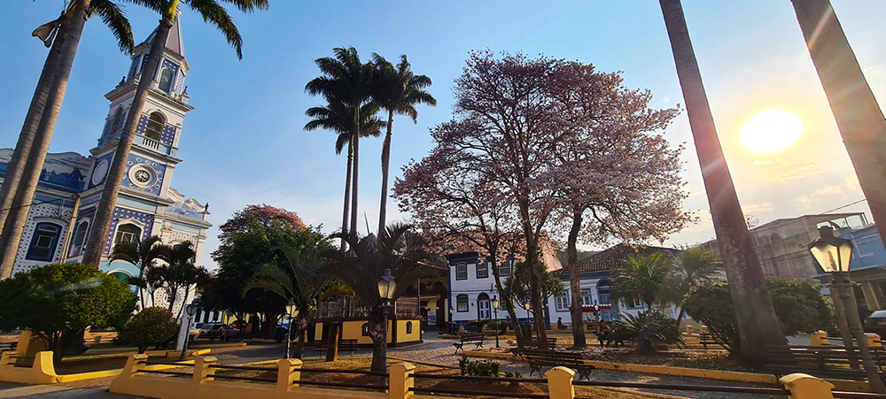 E é pelo centro da cidade que começa nosso passeio. A igreja da Paróquia Santo Antônio mostra sua imponência na Praça Monsenhor Ernesto Almírio Arantes, entre os diversos casarões em seu entorno. Construída a partir de 1872, somente foi inaugurada em 1886. Toda feita em taipa (barro pilado), seu desenho original apresentava duas portas laterais (além da central) e não possuía a grandiosa torre, que só foi edificada em 1904.