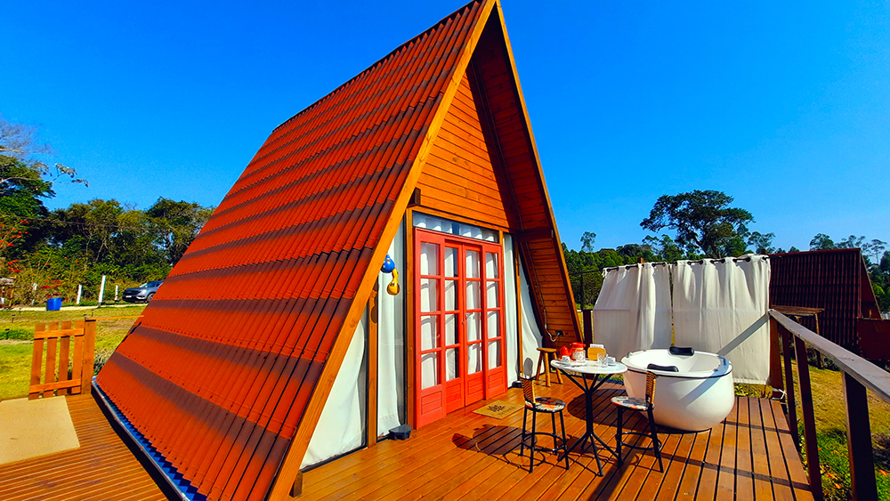 As cabanas, que estão situadas dentro da Reserva Altos das Laranjeiras, têm revestimento em madeira, tanto em seu interior, como na parte externa, dando um quê de rusticidade, com espaço externo para preparar um almoço ou churrasco. À noite, é possível fazer uma fogueira em frente às cabanas para tornar a experiência ainda mais incrível.