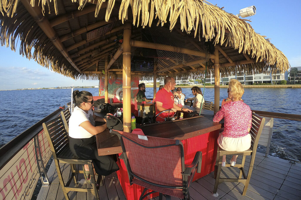 Entre todos os passeios de barco para explorar as paisagens da Charlotte Harbor, em Punta Gorda, na costa oeste da Flórida, nenhum é mais divertido do que o ofercido pela Red Tiki Tours, que faz uma alegre navegação pela baía em uma espécie de jangada-bar.