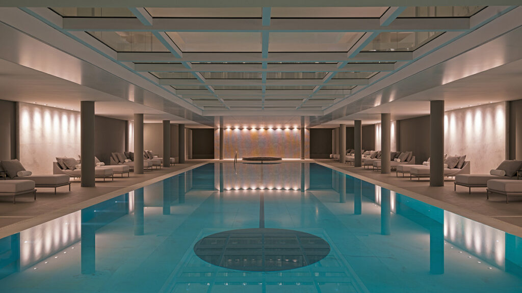 O penúltimo andar do hotel é reservado para o Spa Fasano, que oferece um variado cardápio de massagens e tratamentos estéticos. A piscina interna aquecida é rodeada de grandes janelas que dão vista elevada para o bairro dos Jardins. O espaço conta também com ofurôs e saunas (seca e a a vapor).