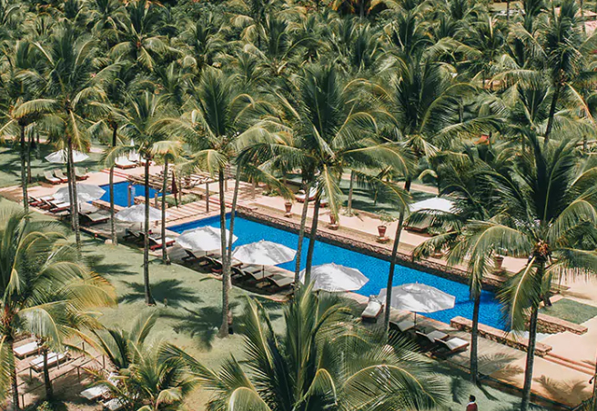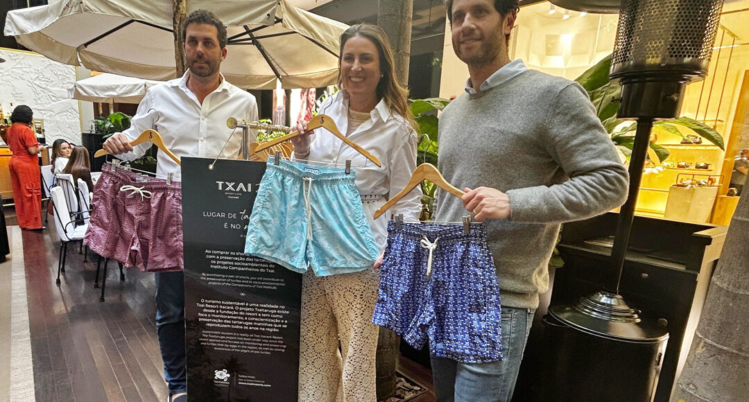 Inspirada no cenário tropical e na filosofia de bem-viver do resort, a coleção traz peças com estampas que remetem às cores do mar e às tartarugas-marinhas, símbolo do Projeto Txaitaruga, iniciativa ambiental mantida pelo resort.
