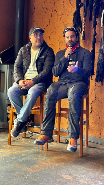 Ao lado de Claudio Castillo, organizador de corridas da Andes Race, Francisco Basili, presidente da Associação Peruana de Turismo de Aventura, Ecoturismo e Turismo Especializado (APTAE), celebrou o sucesso da primeira edição e anunciou com entusiasmo que a próxima Peru Outdoor Expo, em 2026, será realizada na Amazônia peruana. Foto: Aida Lima
