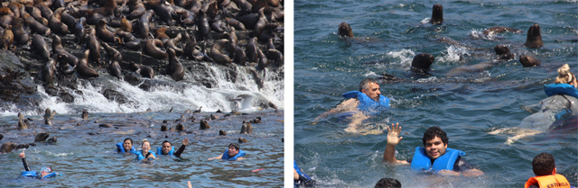 Experiência de nado com leões-marinhos, promovida pela EcoCruzeiros, em Lima. Fotos: divulgação