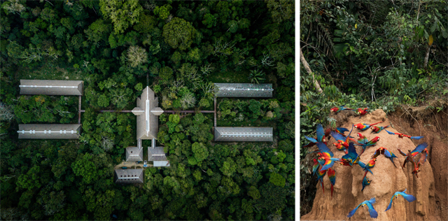 Chalés de luxo na Reserva Nacional de Tambopata, na Amazônia, oferecidos pela Rainforest Expeditions, combinando conforto e contato com a natureza. Fotos: Divulgação Rainforest Expediciones_Refugio Amazonas