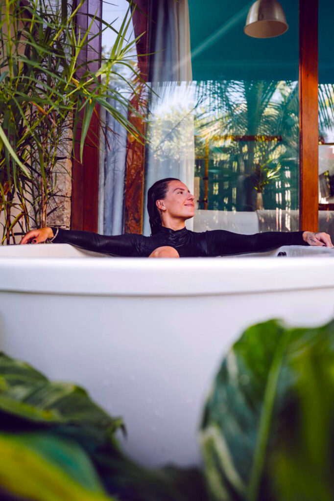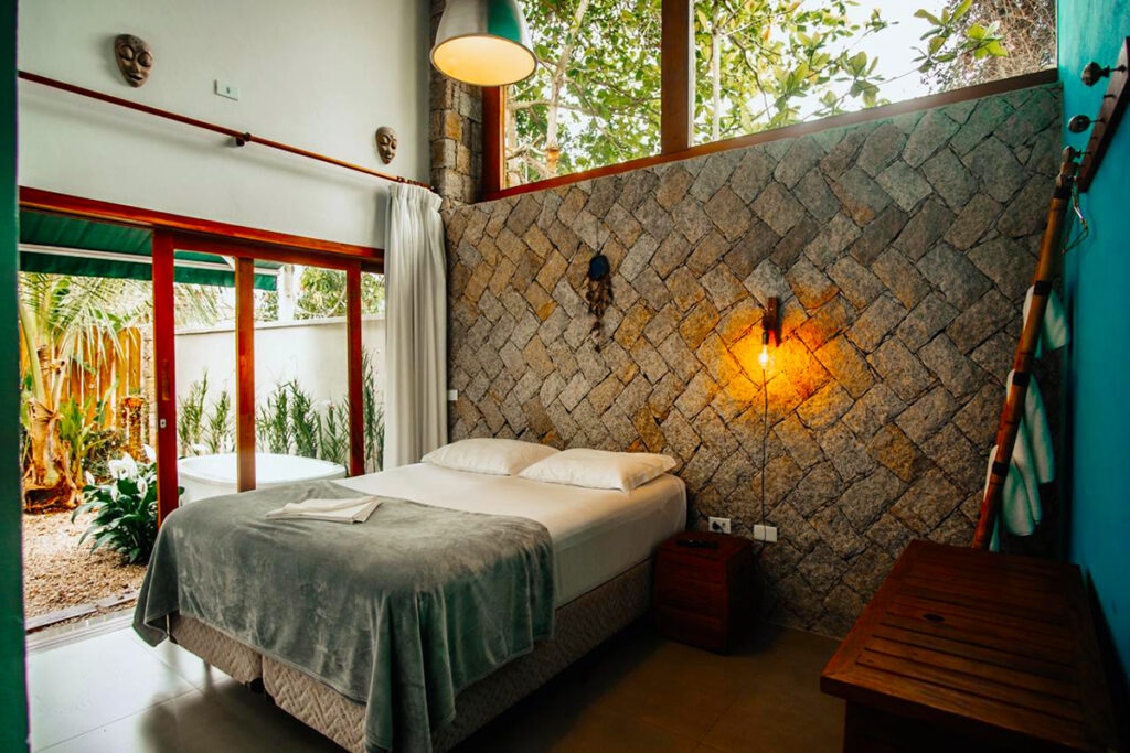 Nas suítes Jardim o hóspede ainda pode relaxar ao ar livre na banheira de hidromassagem localizada em um jardim privativo, ao som das mais variadas espécies de aves existentes por ali. Há ainda aulas gratuitas de yoga e o Jungle Spa, com terapias holísticas para o bem-estar com valores à parte, e a piscina no terraço, com vista para o mar.