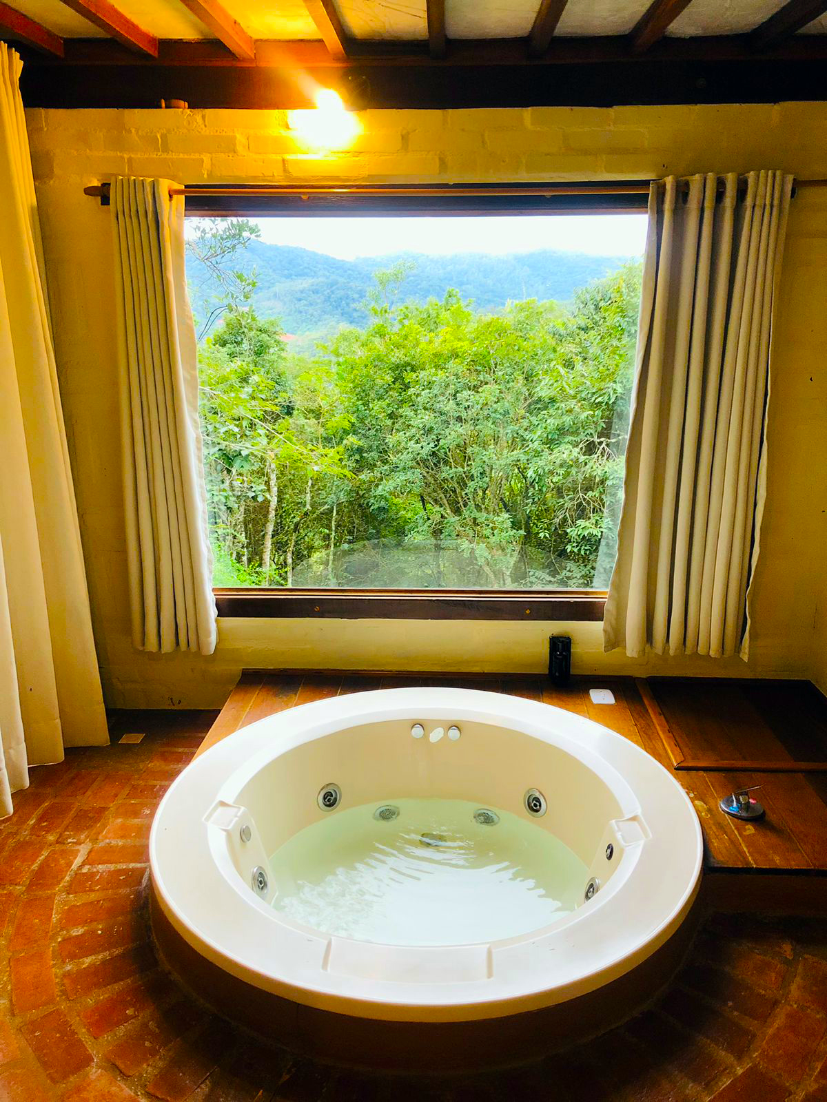 A Suíte Super Luxo com Banheira é perfeita para uma lua de mel ou um pedido de casamentos ou apenas para algumas noites românticas. Conta com cama queen, enxoval de qualidade, smartTV, frigobar, banheiro exclusivo, com chuveiro a gás e elétrico, e secador de cabelo. Sem contar o jardim privativo com vista privilegiada para a Mantiqueira.