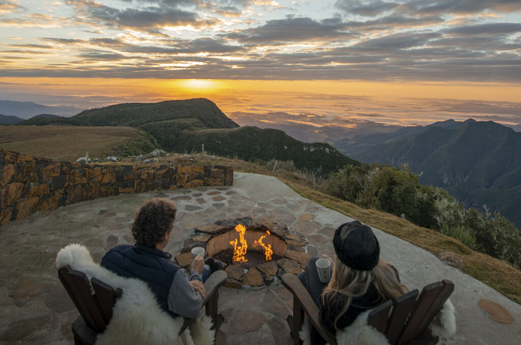 Além do conforto, a paisagem no entorno é encantadora, com morros e um belo lago. E fica ainda mais bonita no inverno, quando a geada pode cobrir os campos de branco com um fina camada de gelo. Durante o dia, os hóspedes podem passear a cavalo pela borda dos cânions da Serra Catarinense; caminhar por trilhas (como a do Puma, que termina em uma cachoeira); ou apenas relaxar na piscina aquecida a 34 ºC, que fica em uma sala envidraçada.